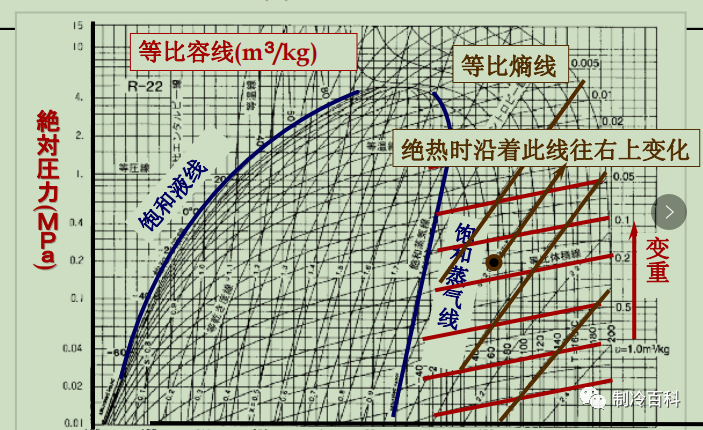 壓焓圖它是冷媒的地圖,表示了冷媒的熱力學性質(壓力.溫度.熱量等),壓一焓圖繪制了制冷循環冷媒的狀態變化,根據該圖可以計算出制冷量.冷凝熱量,可以判斷出制冷設備的運行狀態。